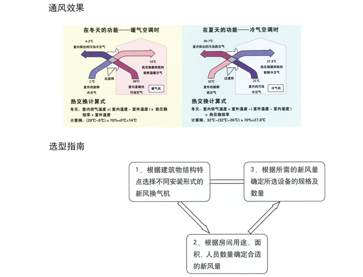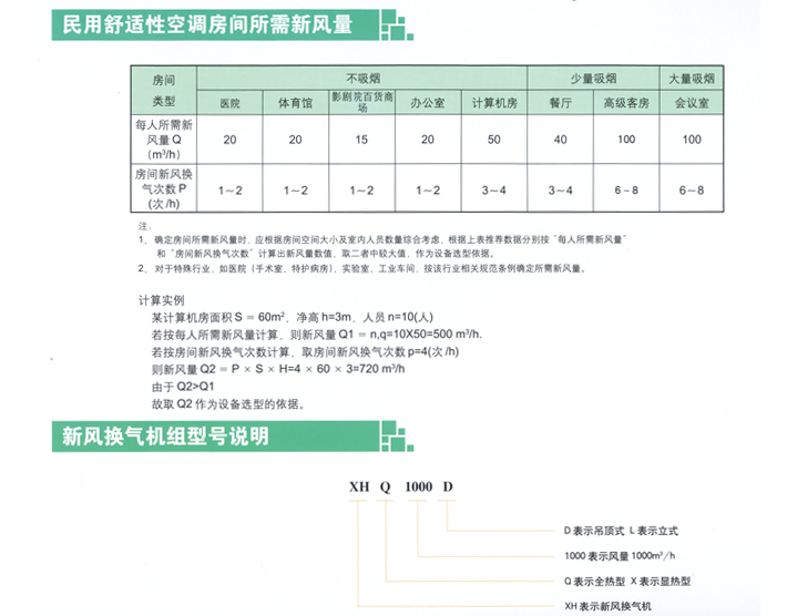 使用面積:應根據房間空間大小及室內人員數量綜合考慮,根據 “每 人所需新風量”和“房間新風換氣次數”計算出新風量,然后選型。
